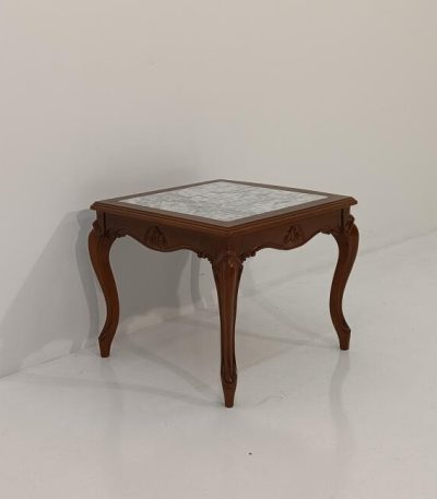 140,00 €Mesa de Centro em mogno com tampo em pedra mámore e prateleira inferior