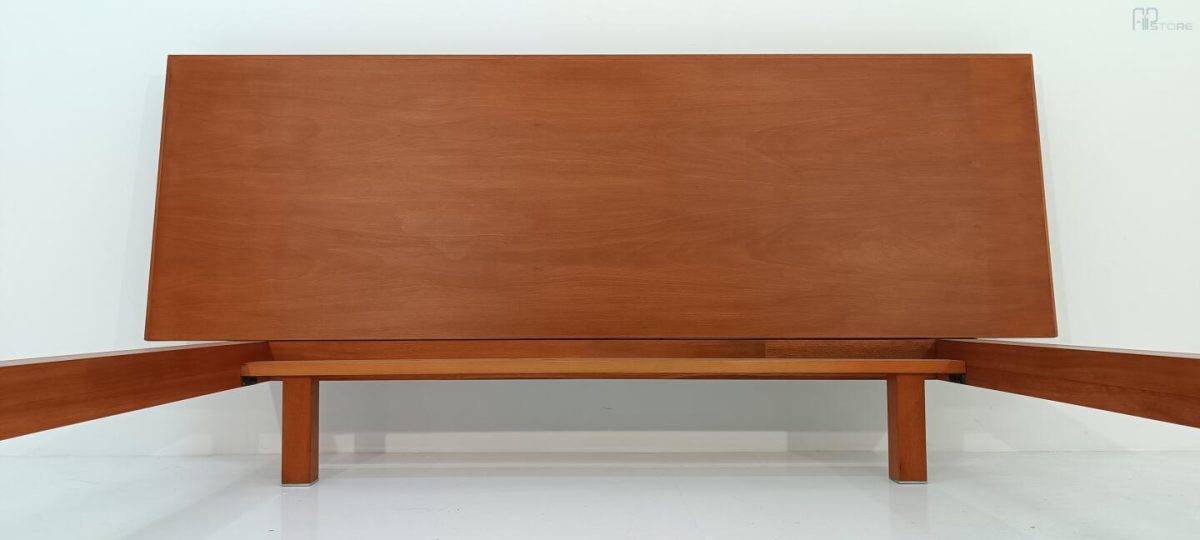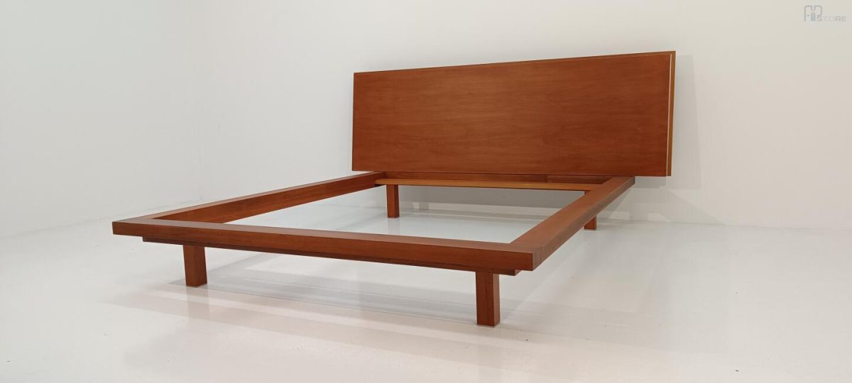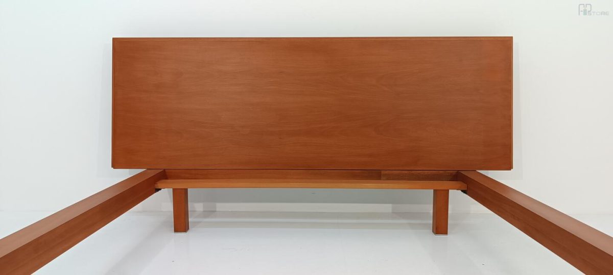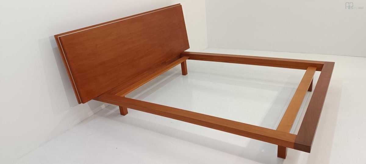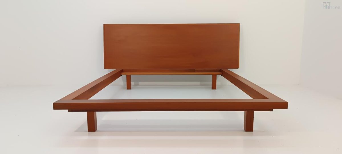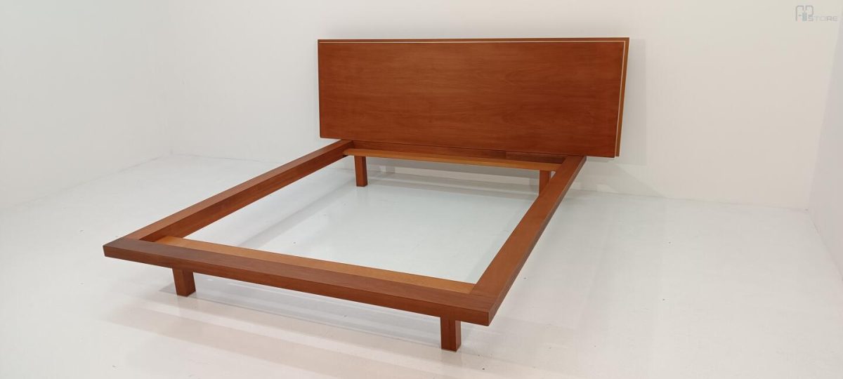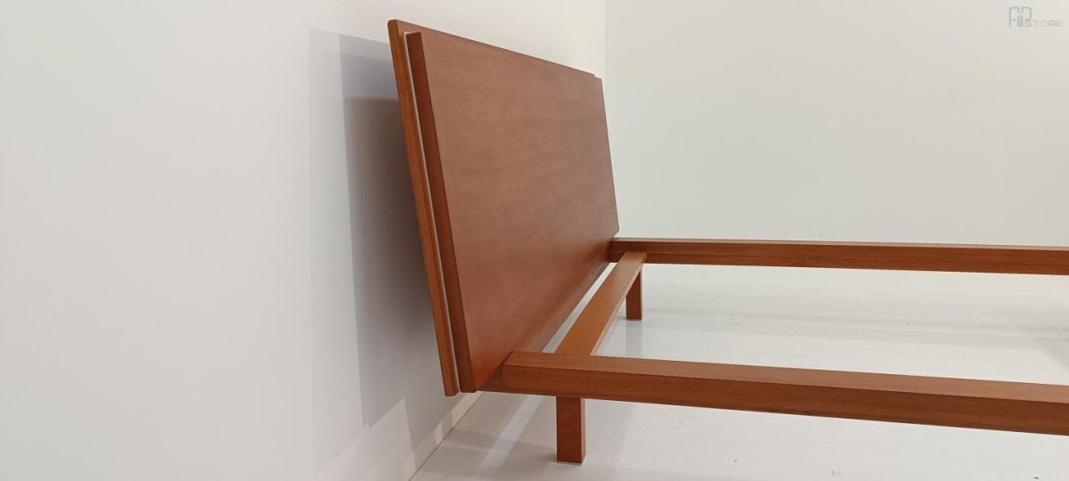 Cama em cerejeira com cabeceira alta e apontamento em friso de aluminio na cabeceira e pés. (213 x 30 x 173)