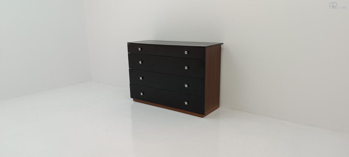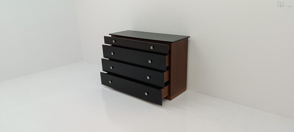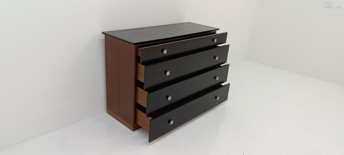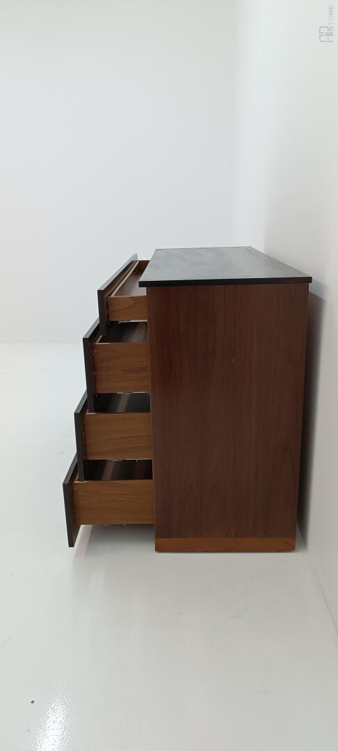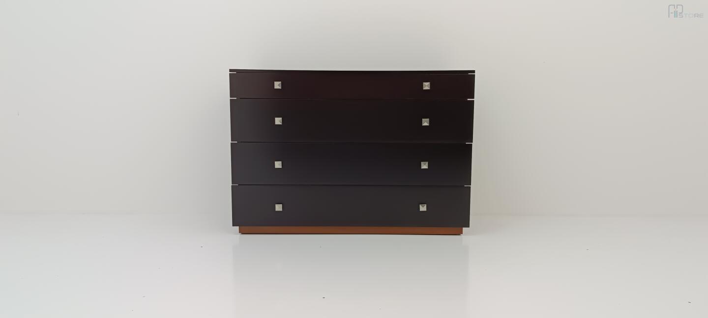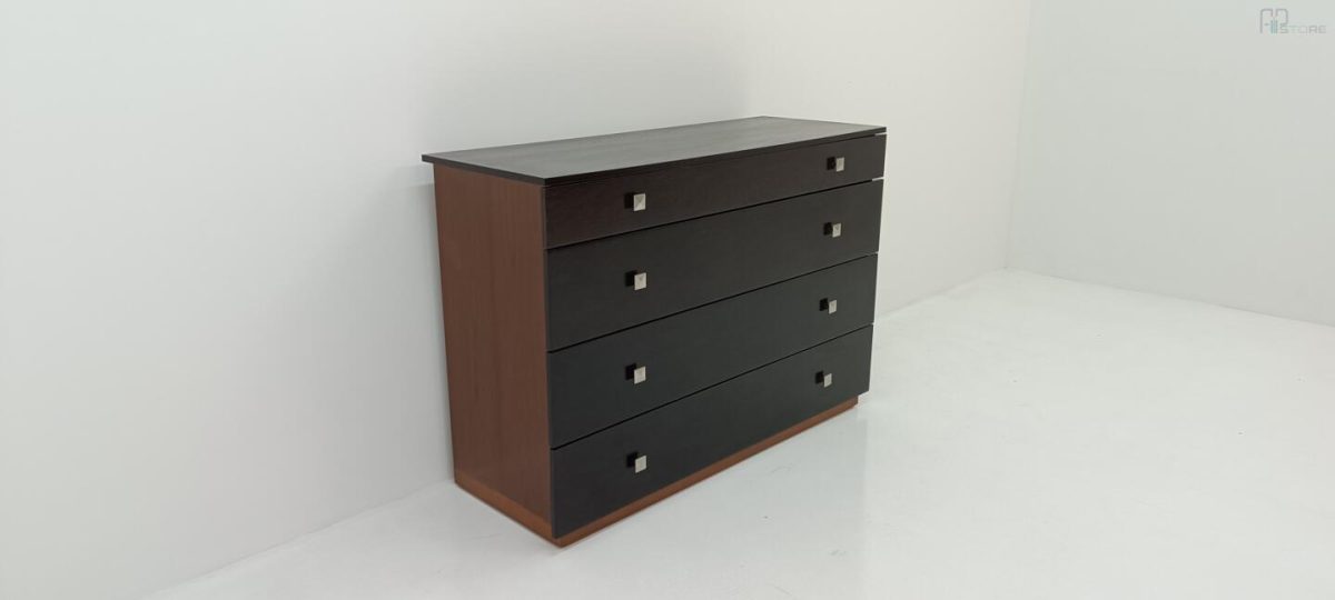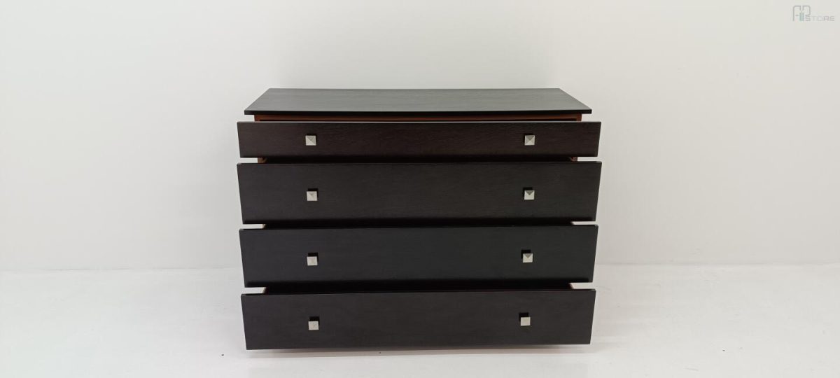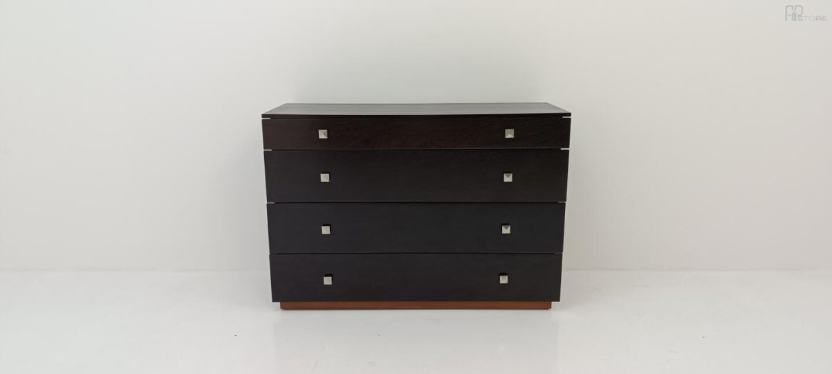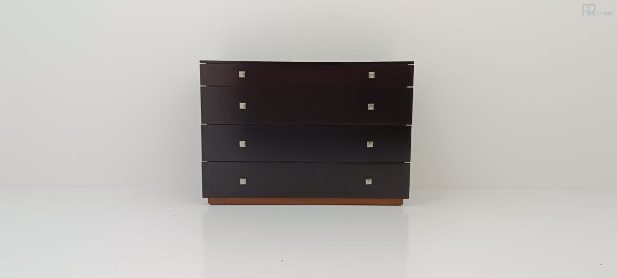Móvel Cómoda em Wenguê composta por 4 gavetas e puxadores metálicos (126 x 88 x 47)