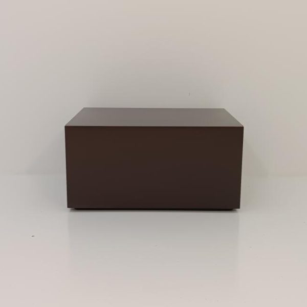 Mesa cabeceira em wengê castanho com duas gavetas. Um gavetão e uma gaveta interior. Acabamento verniz brilhante.