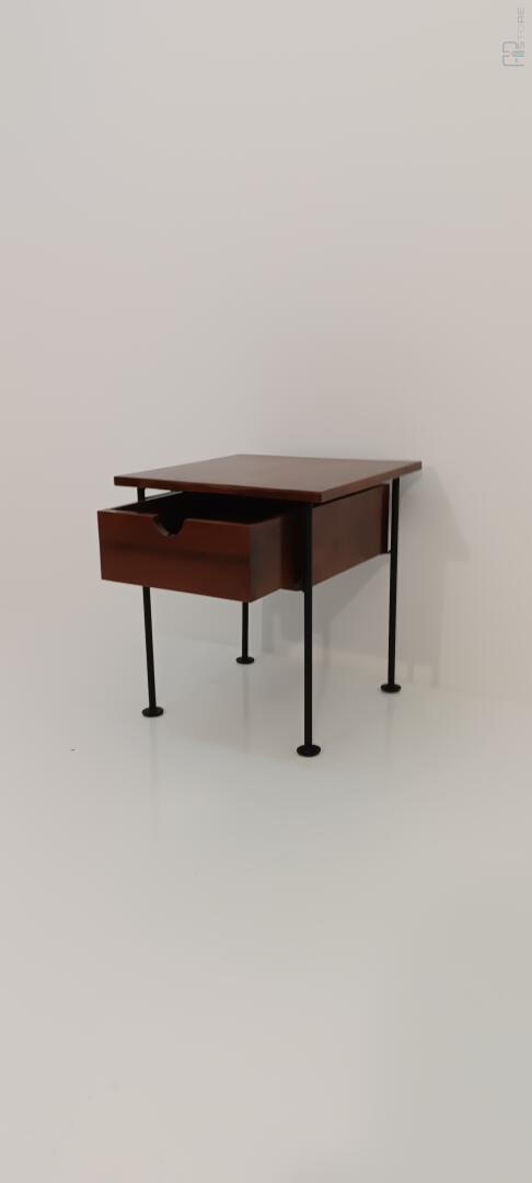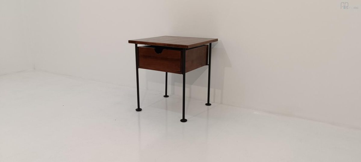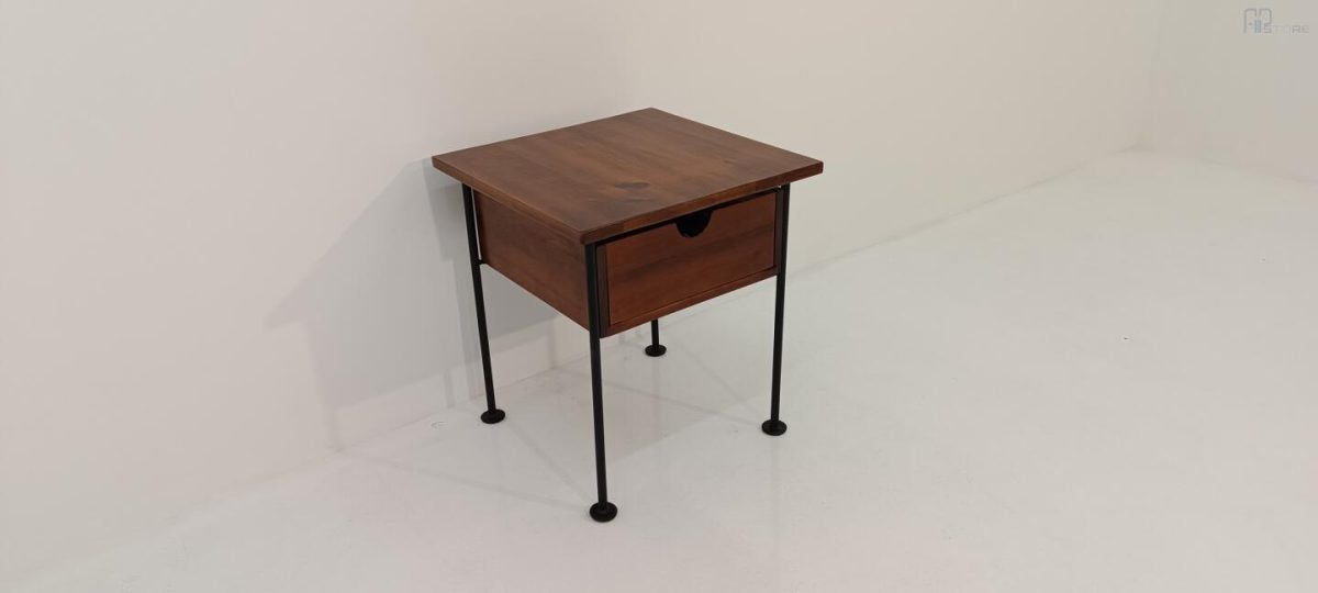 Mesa de Cabeceira em estrutura metálica e madeira com 1 gaveta