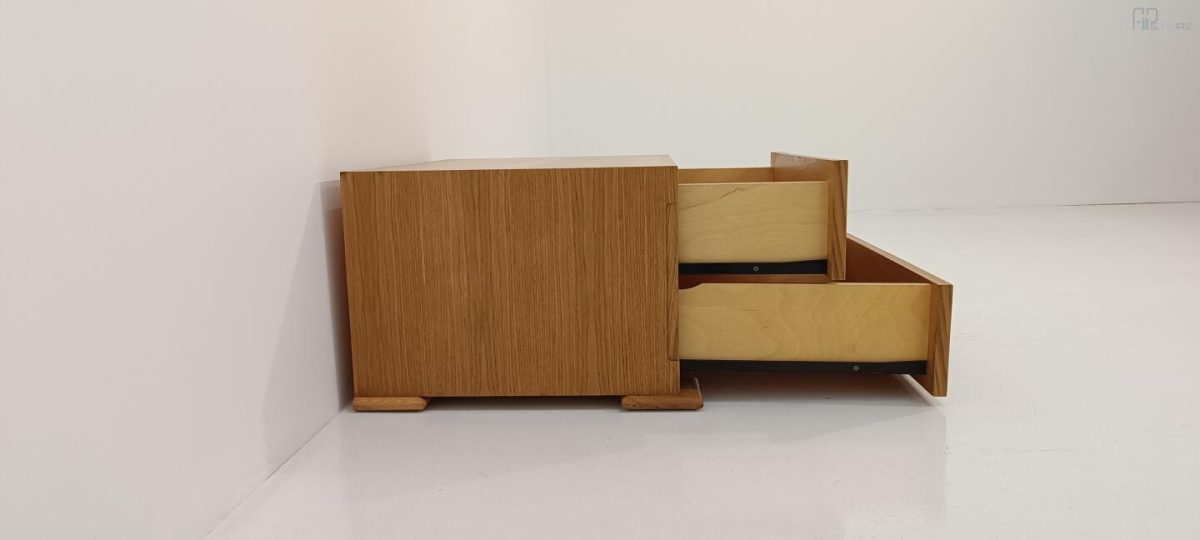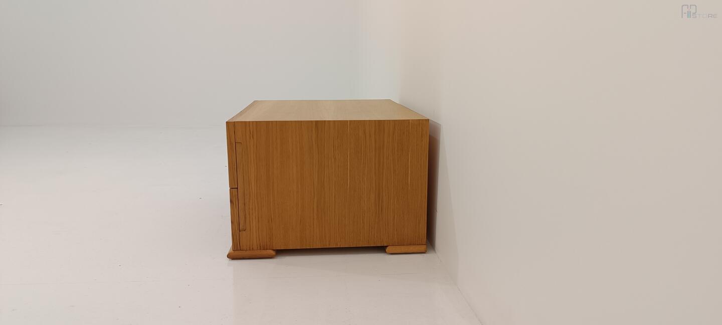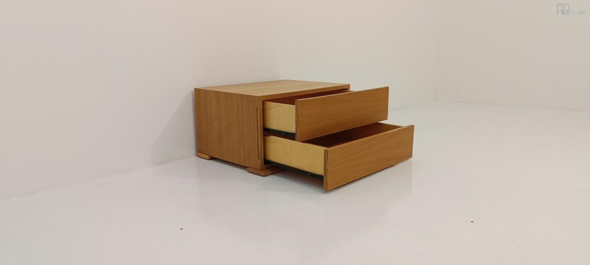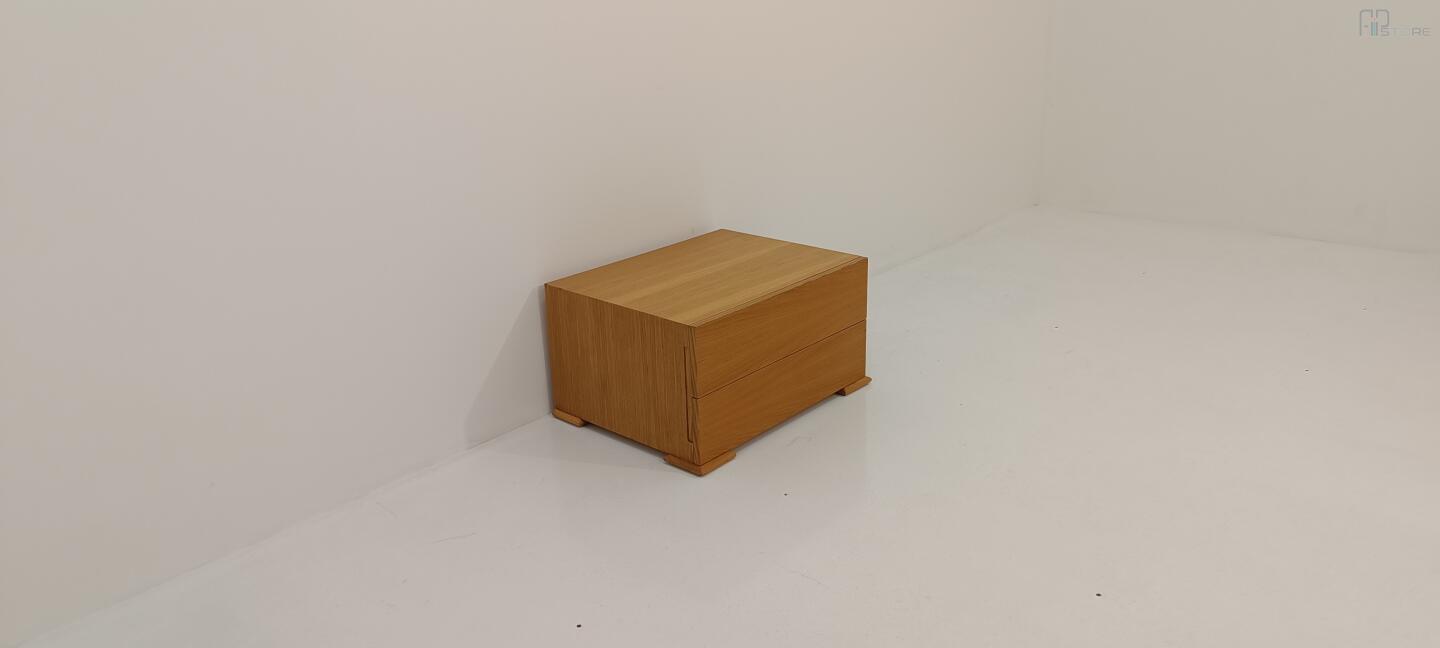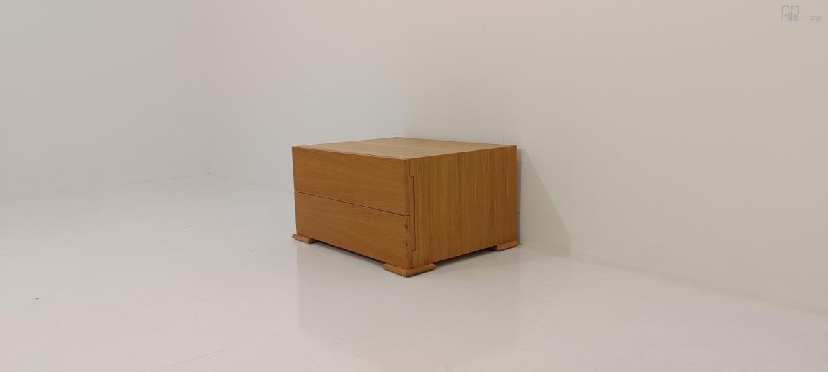 Mesa de Cabeceira em carvalho com duas gavetas e com pés quadrados em madeira