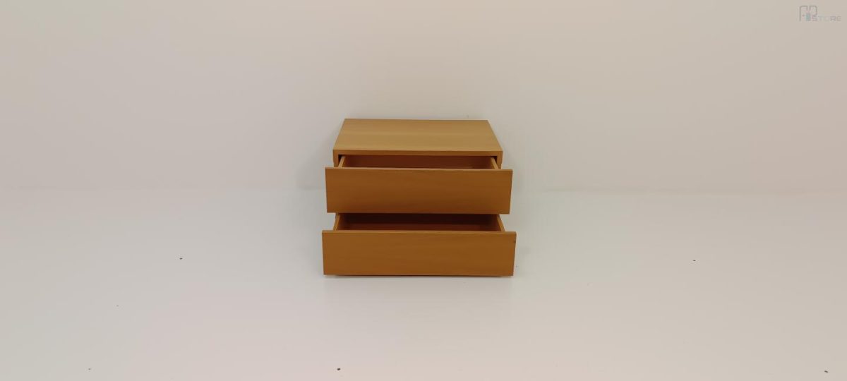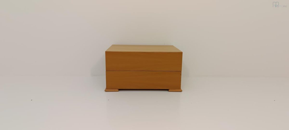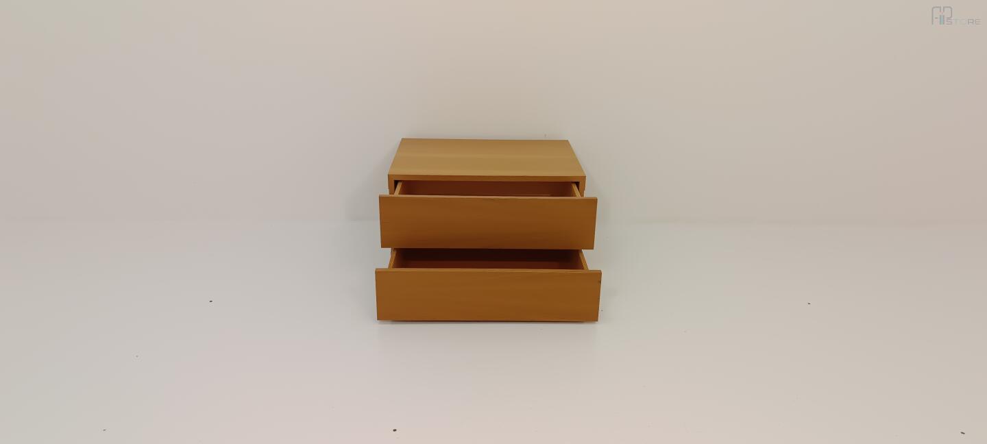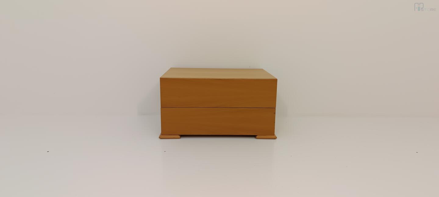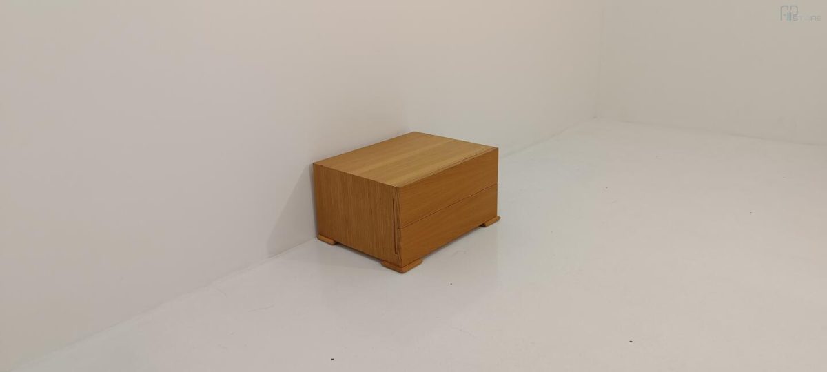 Mesa de Cabeceira em carvalho com duas gavetas e com pés quadrados em madeira